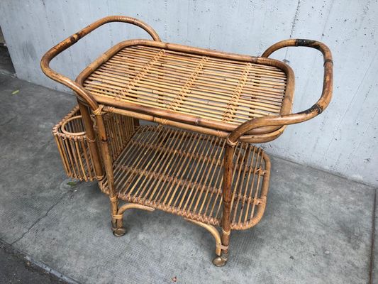Italian Bamboo Wicker Bar Cart 1950s For Sale At Pamono