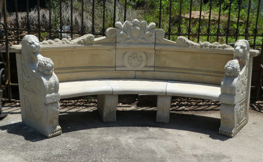 For Sale Reclaimed Impressive Curved Stone Garden Bench With Lions