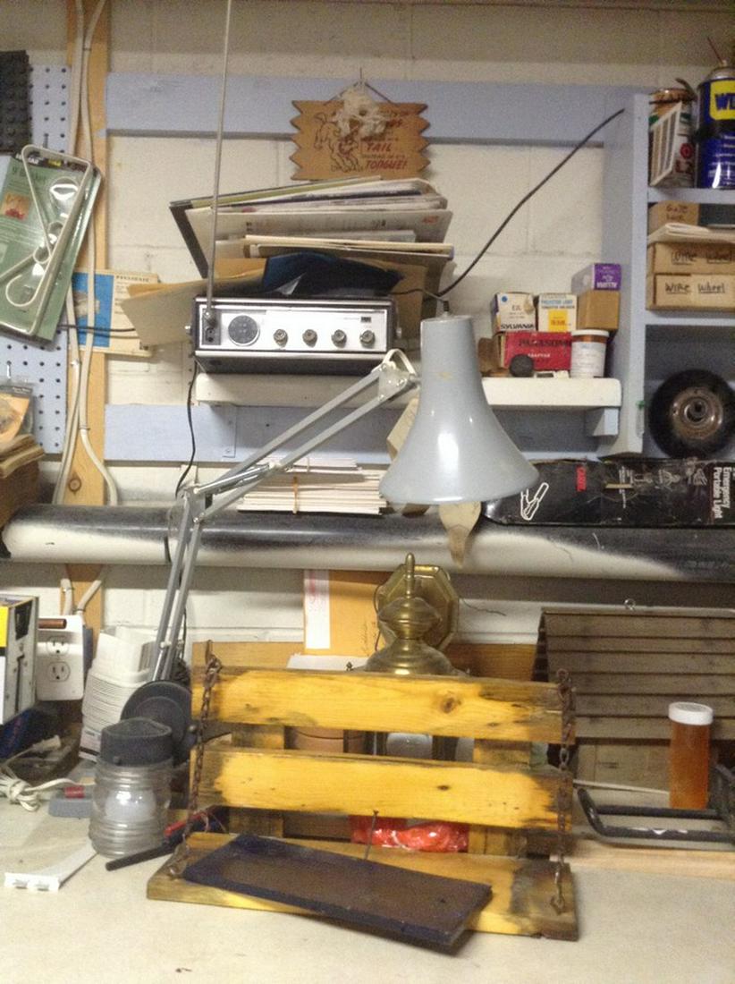Messy Work Bench Coleman Bracket Lamp Larry The Lantern Guy